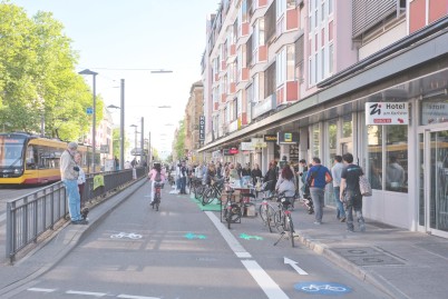 Das „Beste“ zum Schluss: Drei Tage vor Beginn der Sommerferien, am Montag, 28. Juli, wurden ÖPNV-Fahrgäste in Karlsruhe gleich morgens von teilweise drastischen Auswirkungen des umfangreichen SEV der Verkehrsbetriebe Karlsruhe begrüßt. Eigentlich wurde dieser SEV erst am Ende der Woche erwartet, er war für die „Baumaßnahmen in den Sommerferien“ angekündigt worden. Insgesamt waren die Fahrgäste sieben Wochen lang herausgefordert, sich, um nur zwei Beispiele zu nennen, mit ungewohnten oder kurzfristig geänderten Zuwegungen zu (Ersatz-)Haltestellen, die mehr oder weniger deutlich gekennzeichnet waren, oder mit Ein- und Ausstieg an den für Busse nicht barrierefreien Kap-Haltestellen (z. B. Schlossplatz Durlach oder Kolpingplatz) zurechtzufinden. Es soll in diesem Bericht zum Fußverkehr nicht unerwähnt bleiben, dass der SEV an vielen Stellen in der Stadt den Radverkehr eingeschränkt hat, insbesondere dort, wo Ersatzhaltestellen auf Radwegen eingerichtet wurden. Der SEV war Stadtgespräch, so ist nur wenigen aufgefallen, dass auch dieser Sommer uns erfreulicherweise wieder mehr freie Gehwege beschert hat, z. B. in der Weststadt rund um den Haydn-Platz, wo sonst das Personal naheliegender Behörden alle Gehwege zuparkt.